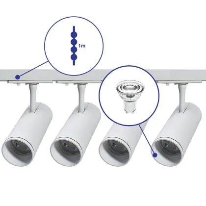 | Fabrikantnaam | Complete Straight 1-meter 1-Phase Track Set White incl. 4x Spot fixture + GU10 2700K 3W Dim – 1 Mete | |