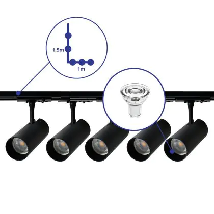 | Fabrikantnaam | Complete L shaped 1-Phase Track Set Black incl. 5x Spot fixture + GU10 2700K 3W Dim - 1 x 1,5 meter | |