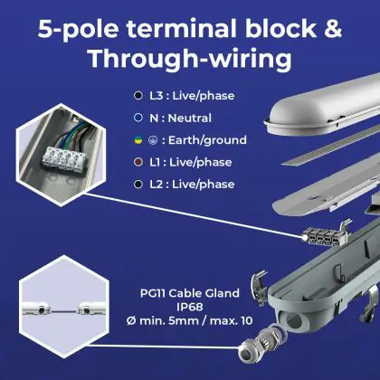 Noxion LED Waterdichte Montagebalk Poseidon V3.0 19-33W 2340/4200lm - 830-865 CCT | 120cm - Doorvoerbedrading (5x2.5mm2) - 3 Uur Noodverlichting