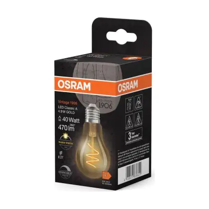 | Fabrikantnaam | Vintage 1906 LED CLASSIC A,B,P SLIM FILAMENT DIMMABLE 4.9W 927 Gold E2 | |