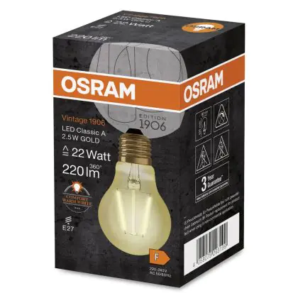 | Fabrikantnaam | Vintage 1906 LED CL A FIL GOLD 22 non-dim 2,5W/824 E27 | |