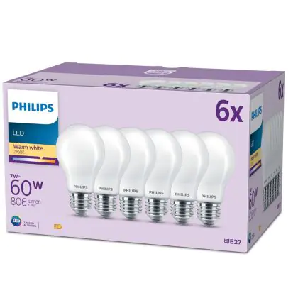 | Fabrikantnaam | Box 6 stuks - Philips LED Lamp Mat - 60 W - E27 - Warmwit licht | |
